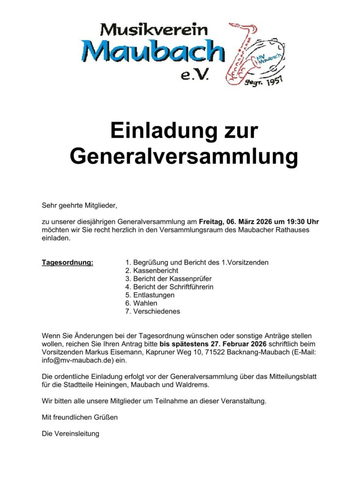 Wir sind der klangvolle Treffpunkt für Maubach, Waldrems und Heiningen – aktiv in den südlichen Backnanger Stadtteilen seit 1957.